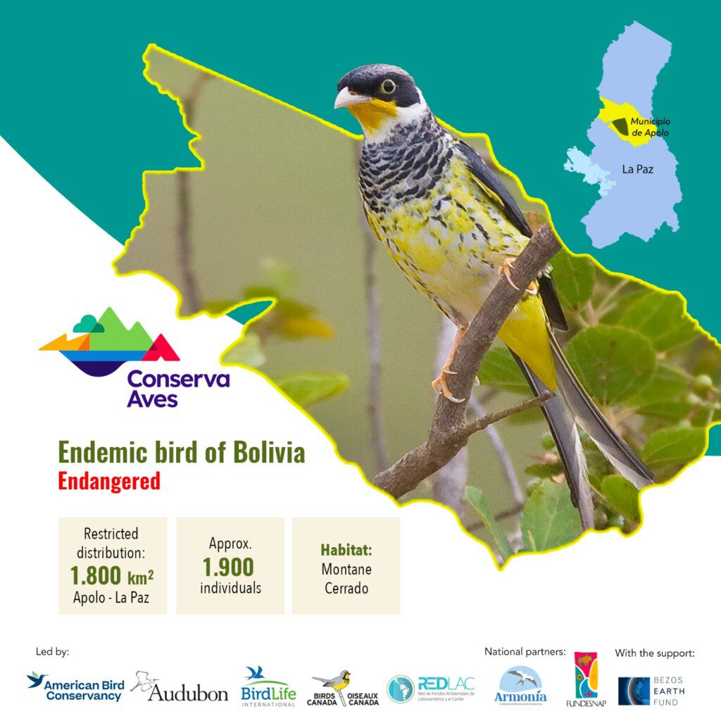 Everything changed when Asociación Armonía arrived with news: This small bird, with its long forked tail and striking yellow and black plumage, is endemic to Apolo (northern La Paz department, Bolivia). Rediscovered in the year 2000, the Palkachupa Cotinga now faces an alarming decline. With an estimated population of around 1,900 individuals and a distribution restricted to 1,800 square kilometers, its survival depends on a single ally: the communities that share its habitat.